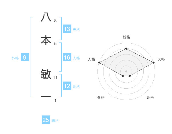 八本 敏一さんの総格は25画の4点!