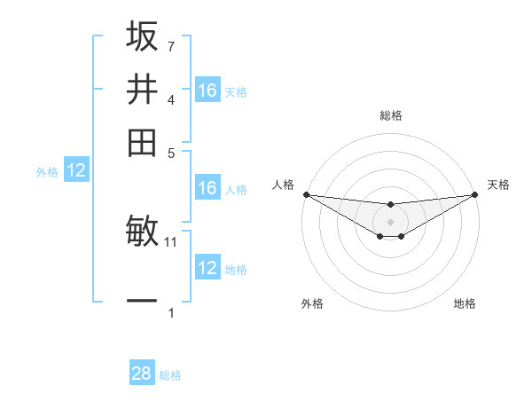 坂井田 敏一さんを姓名の画数から五運を鑑定