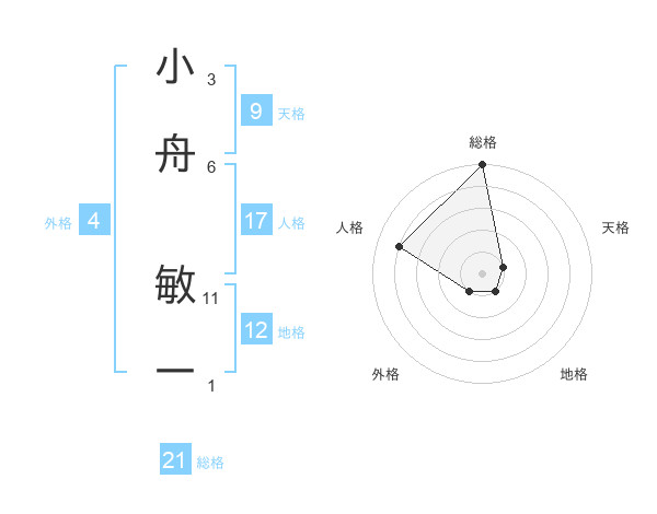 小舟 敏一さんの総格は21画の5点!