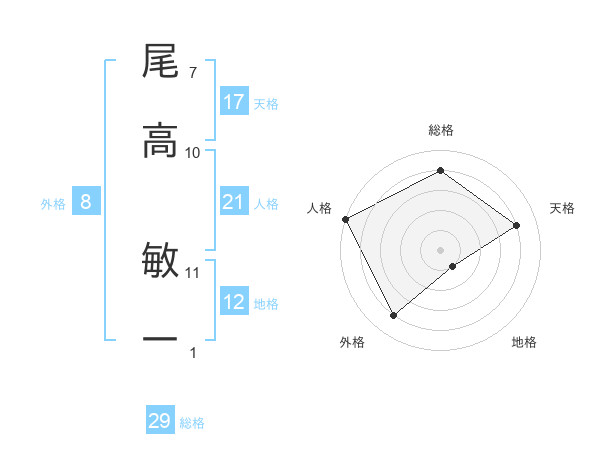 尾高 敏一さんの総格は29画の4点!