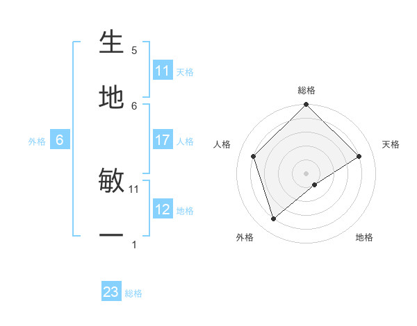 生地 敏一さんの総格は23画の5点!