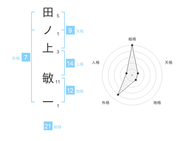 田ノ上 敏一さんを姓名の画数から五運を鑑定