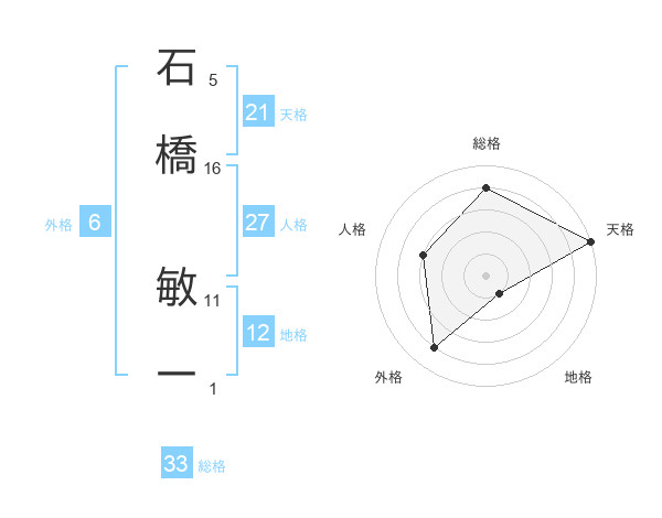 石橋 敏一さんの総格は33画の4点!