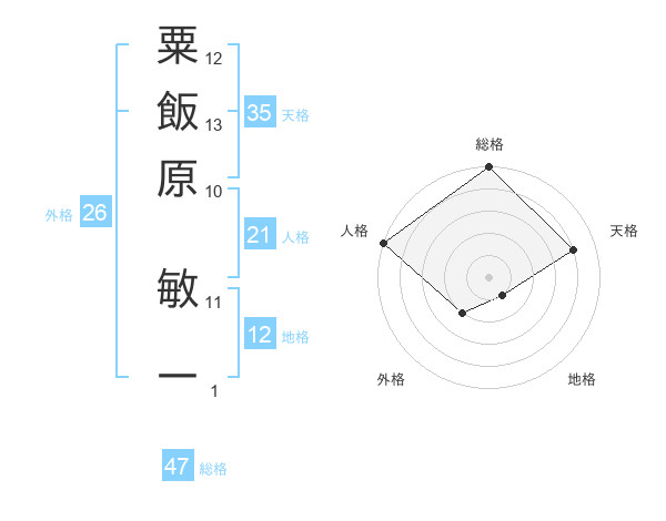 粟飯原 敏一さんを姓名の画数から五運を鑑定
