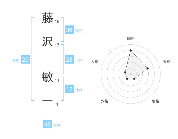 藤沢 敏一さんを姓名の画数から五運を鑑定