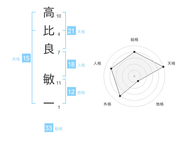 高比良 敏一さんの天格は21画の5点!