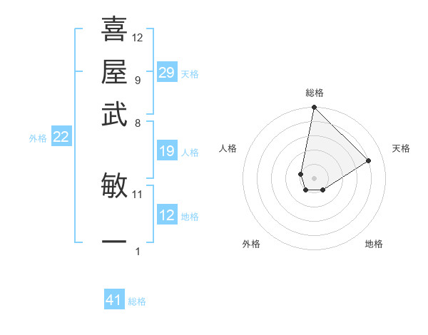 喜屋武 敏一さんを姓名の画数から五運を鑑定