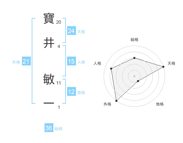寶井 敏一さんの天格は24画の5点!
