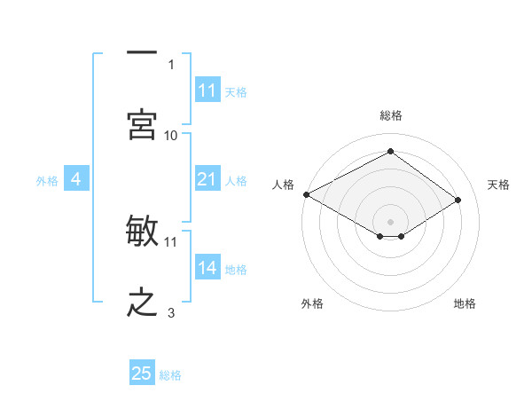 一宮 敏之さんを姓名の画数から五運を鑑定