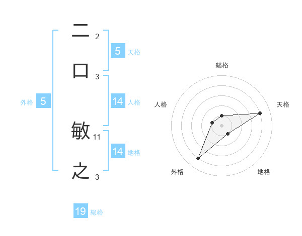 二口 敏之さんの天格は5画の4点!