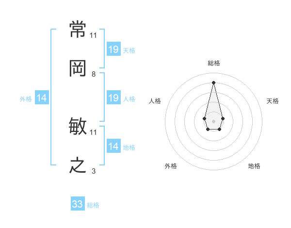 常岡 敏之さんの総格は33画の4点!