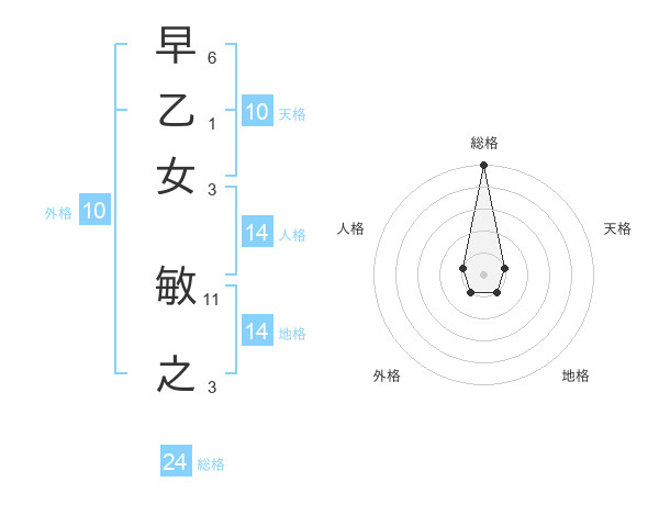 早乙女 敏之さんを姓名の画数から五運を鑑定