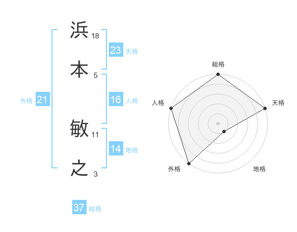 浜本 敏之さんの総格は37画の5点!