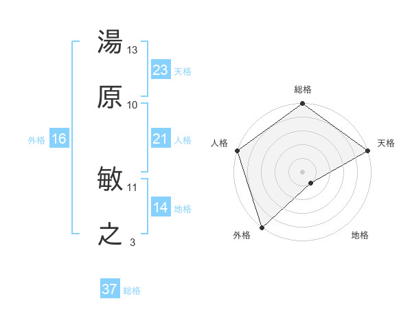 湯原 敏之さんの総格は37画の5点!
