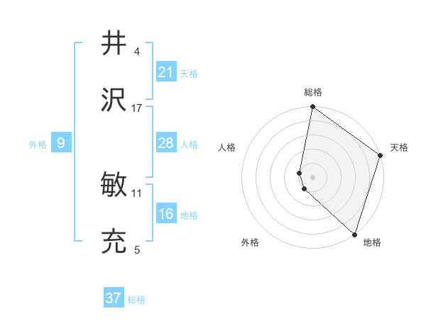 井沢 敏充さんを姓名の画数から五運を鑑定