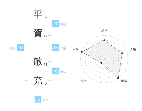 平賀 敏充さんを姓名の画数から五運を鑑定