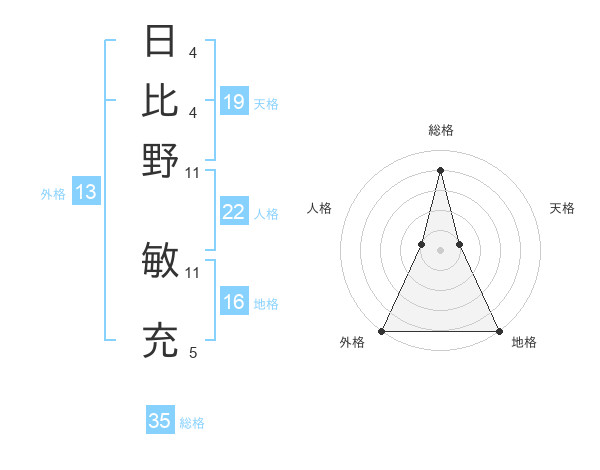日比野 敏充さんの外格は13画の5点!