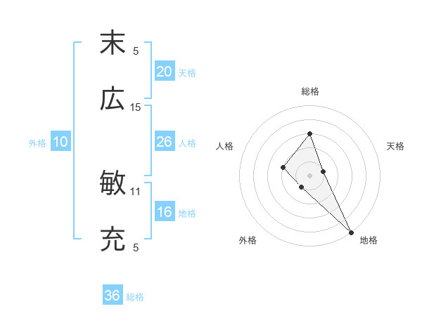 末広 敏充さんの地格は16画の5点!