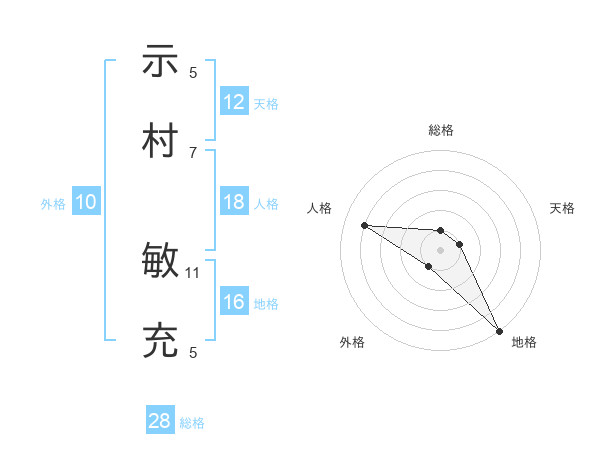 示村 敏充さんの総格は28画の1点!