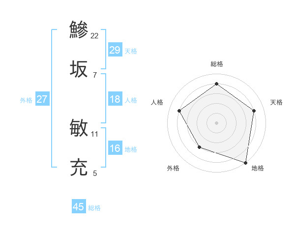 鰺坂 敏充さんを姓名の画数から五運を鑑定