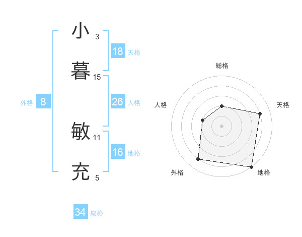 小暮 敏充さんを姓名の画数から五運を鑑定