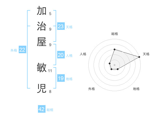 加治屋 敏児さんを姓名の画数から五運を鑑定