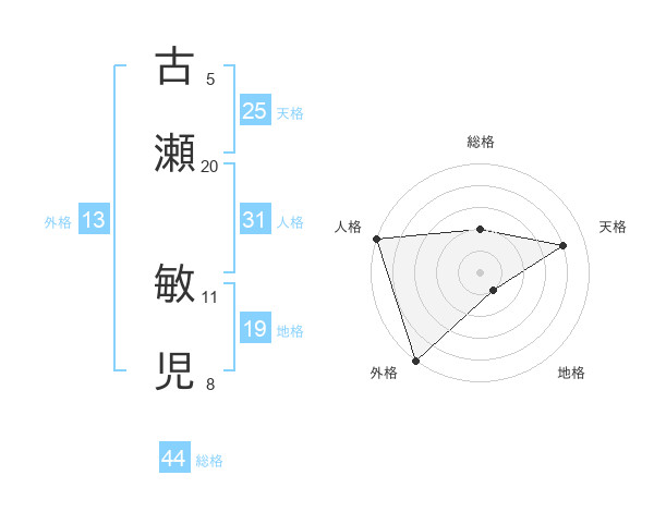 古瀬 敏児さんの人格は31画の5点!