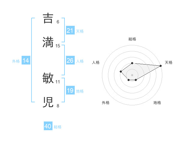 吉満 敏児さんの天格は21画の5点!