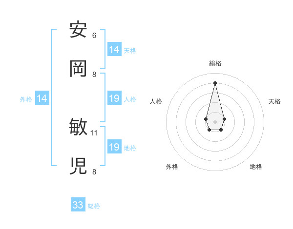 安岡 敏児さんを姓名の画数から五運を鑑定