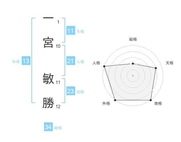 一宮 敏勝さんの外格は13画の5点!