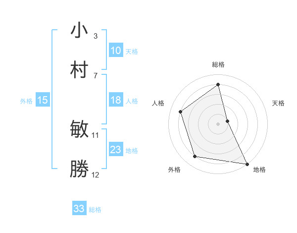 小村 敏勝さんの総格は33画の4点!
