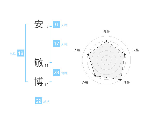 安 敏博さんの総格は29画の4点!