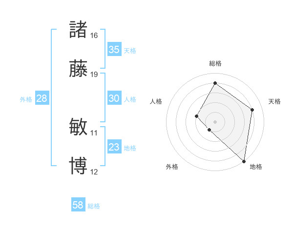 諸藤 敏博さんを姓名の画数から五運を鑑定