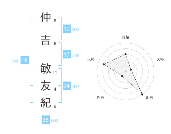 仲吉 敏友紀さんの総格は36画の3点!