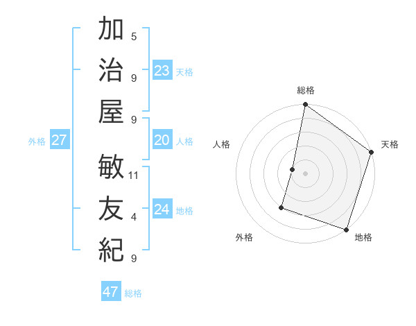 加治屋 敏友紀さんを姓名の画数から五運を鑑定