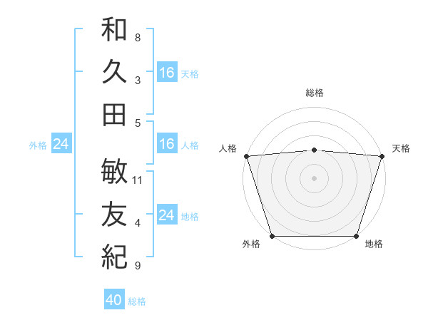 和久田 敏友紀さんを姓名の画数から五運を鑑定