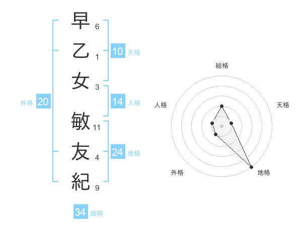 早乙女 敏友紀さんの総格は34画の2点