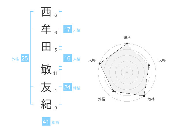 西牟田 敏友紀さんを姓名の画数から五運を鑑定