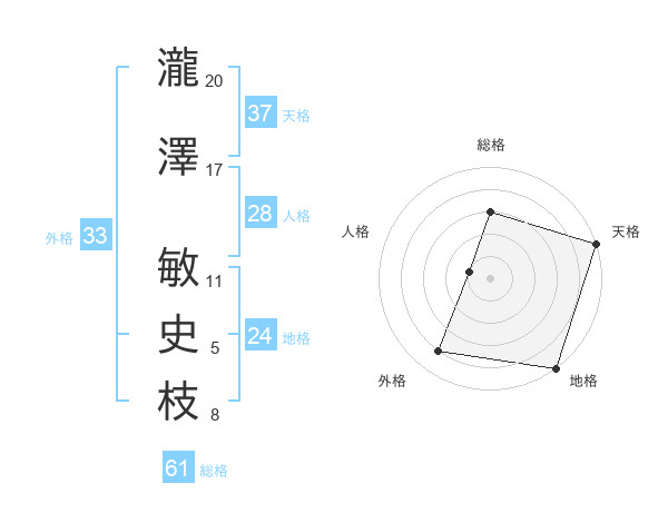 瀧澤 敏史枝さんを姓名の画数から五運を鑑定