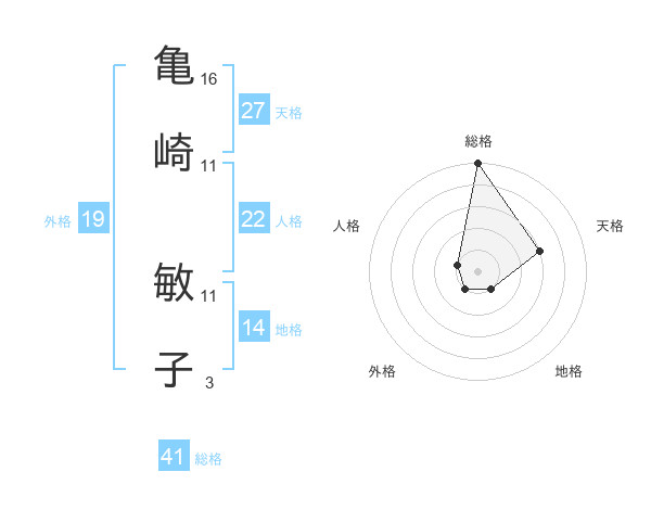 亀崎 敏子さんの総格は41画の5点!