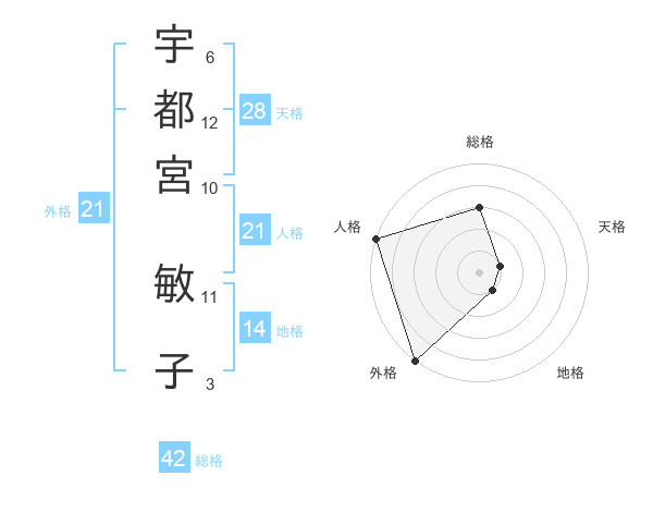 宇都宮 敏子さんを姓名の画数から五運を鑑定
