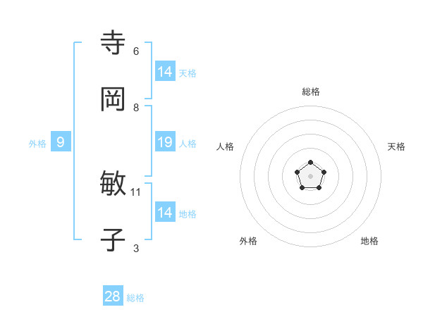 寺岡 敏子さんの総格は28画の1点!