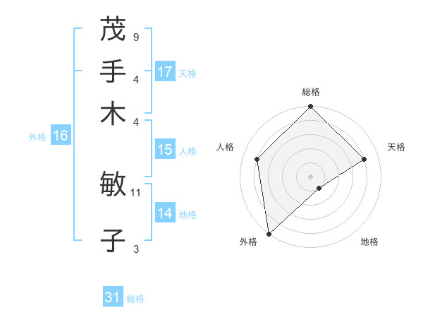 茂手木 敏子さんを姓名の画数から五運を鑑定