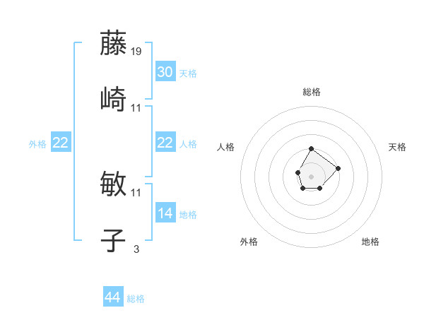 藤崎 敏子さんを姓名の画数から五運を鑑定