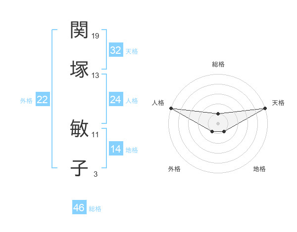 関塚 敏子さんの総格は46画の1点!