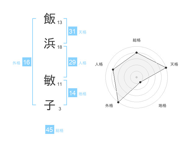 飯浜 敏子さんの天格は31画の5点!