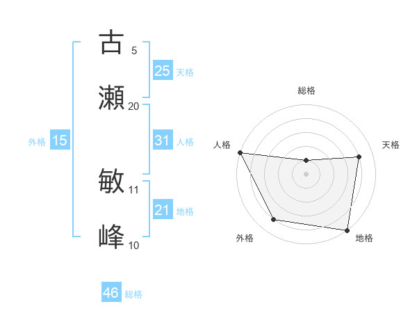 古瀬 敏峰さんを姓名の画数から五運を鑑定