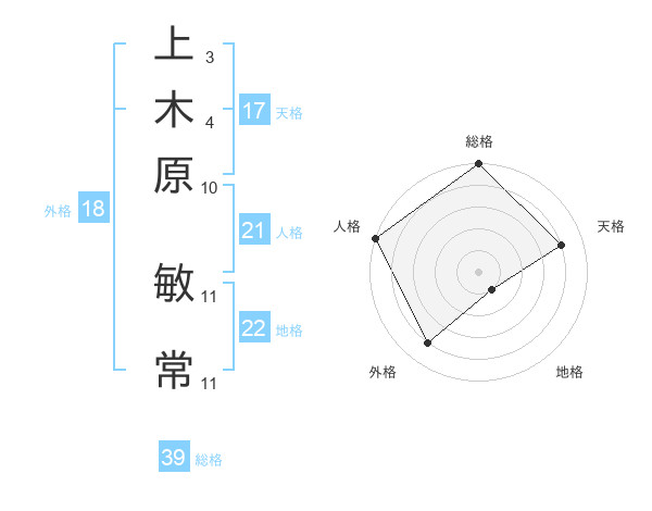 上木原 敏常さんを姓名の画数から五運を鑑定