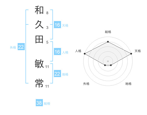 和久田 敏常さんの総格は38画の4点!