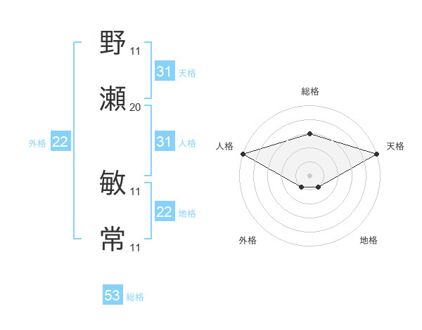 野瀬 敏常さんを姓名の画数から五運を鑑定
